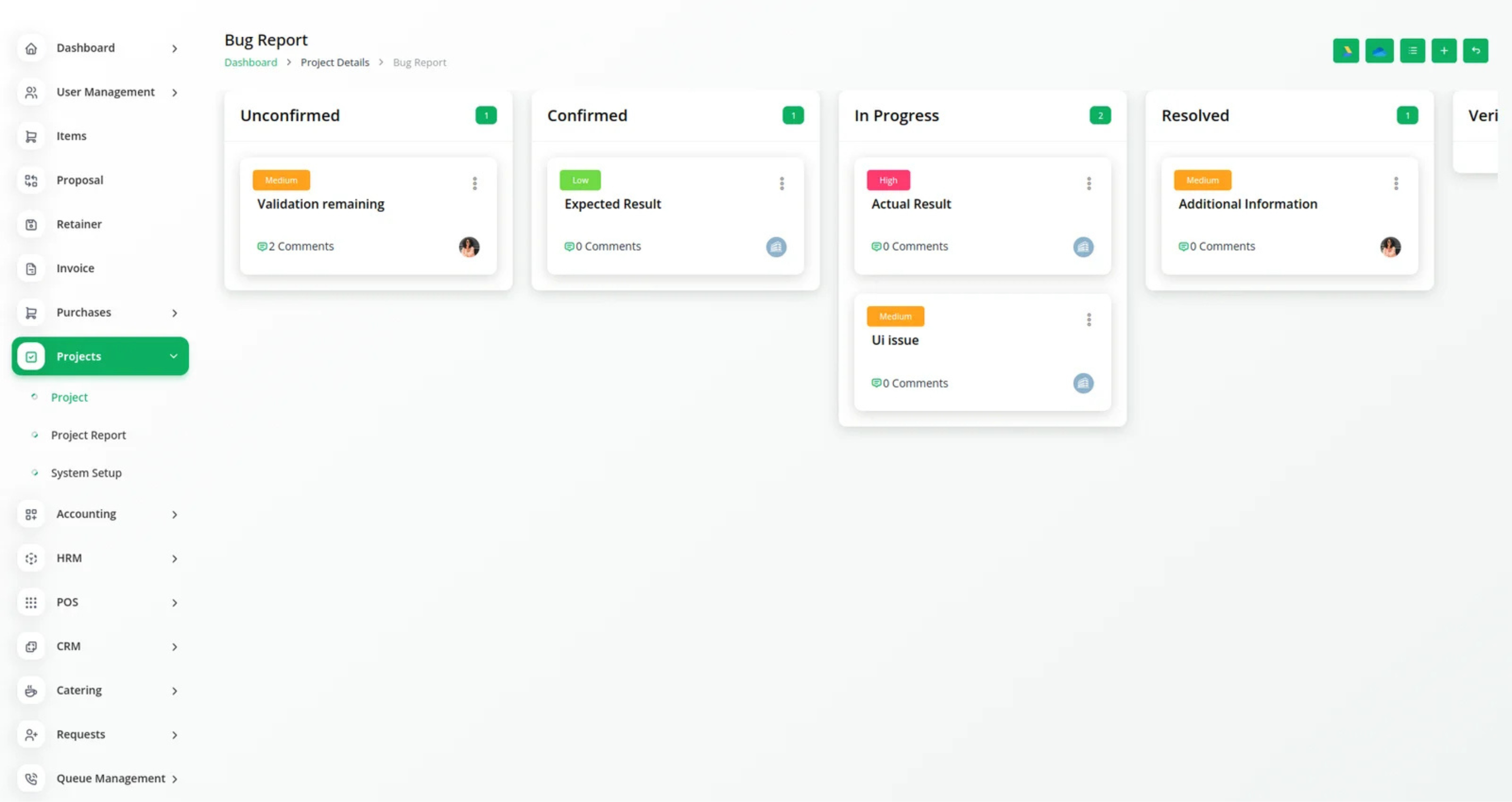 Create, assign, and prioritize bugs directly inside your project dashboard. Add detailed notes, set deadlines, and track bug status via dropdown or Kanban layout for faster issue resolution.